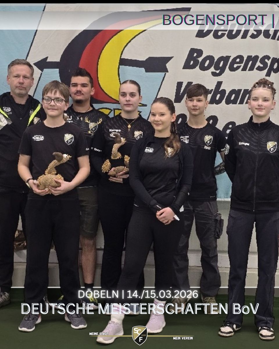 Am Wochenende des 14. und 15. März fanden in Döbeln die Deutschen Meisterschaften im Bogenschießen für Bögen ohne Visier (BoV) statt. Mehrere Schützinnen und Schützen des SC Freital hatten sich für diese hochkarätigen Wettbewerbe auf Bundesebene qualifiziert und zeigten dort beeindruckende Leistungen – besonders im Nachwuchsbereich konnten starke Ergebnisse erzielt werden.