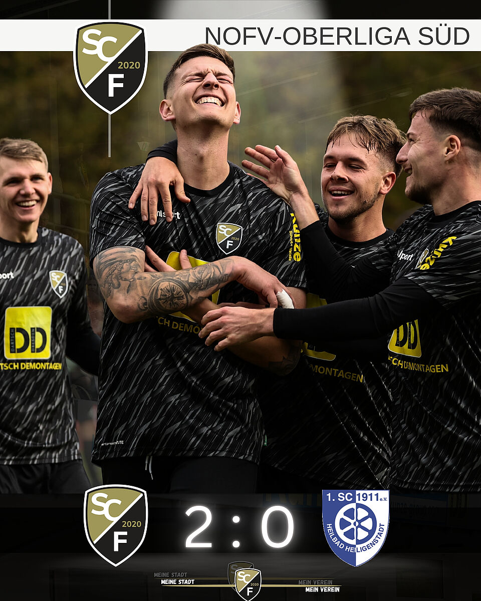 Es war zäh, es war schwer, es war erfolgreich: Der Sportclub gewinnt das Oberligaspiel gegen den 1.SC Heiligenstadt mit 2:0. Paul Horschig mit einem Schlenzer der Marke „Schmecktgudd“ (77.) und der eingewechselte Moritz Herold mit einem Treffer der Marke „Abstaubsauger“ (90.+2) machen den nächsten Heimsieg perfekt!