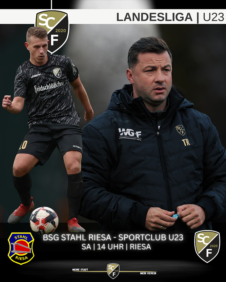 Die U23 gastiert bei der Mannschaft der Stunde: Die BSG Stahl Riesa. Die Nudelstädter haben das, was man getrost einen ‘Lauf’ nennen darf. Zunächst warfen sie am vergangenen Wochenende den Oberligavertreter Bischofswerdaer FV 08 verdient aus dem Sachsenpokal - die “Schiebocker” ereilte somit das gleiche Schicksal wie in Runde 2 die Oberligatruppe unseres SCF - und wusch am Mittwoch beim Liga-Spiel beim Dresdner SC mit einem 3:0-Sieg nach. Entsprechend dürfte das Unterfangen für unsere Jungspunde vom Burgwartsberg kaum schwerer sein. Nach dem 3:6 am vergangenen Wochenende gegen Dresden 06 Laubegast dürfte gerade gegen die Sportstädter aus Riesa die Defensive im Vordergrund stehen. Auf geht's!
