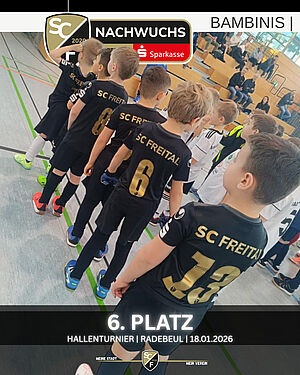 Auch unsere Kleinsten sind erfolgreich unterwegs. Die SCF-Bambinis schlugen sich beim Budenzauber in Radebeul (10. Januar), Dohna (18. Januar) & Freiberg (24. Januar) mehr als wacker und holten hierbei zweimal den zweiten und einmal den sechsten Platz.
