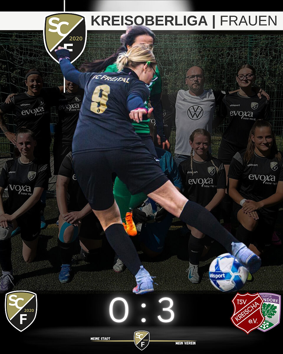 Die Frauen unterliegen der Spielgemeinschaft Kreischa/Possendorf mit 3:0. Alle drei treffen erzielte Dennise Lissina (10., 21., 38.). In der zweiten Halbzeit passierte nicht mehr viel, die Gäste verwalteten gut, dem SCF gelang nach vorne nicht mehr viel. Weiter geht's!