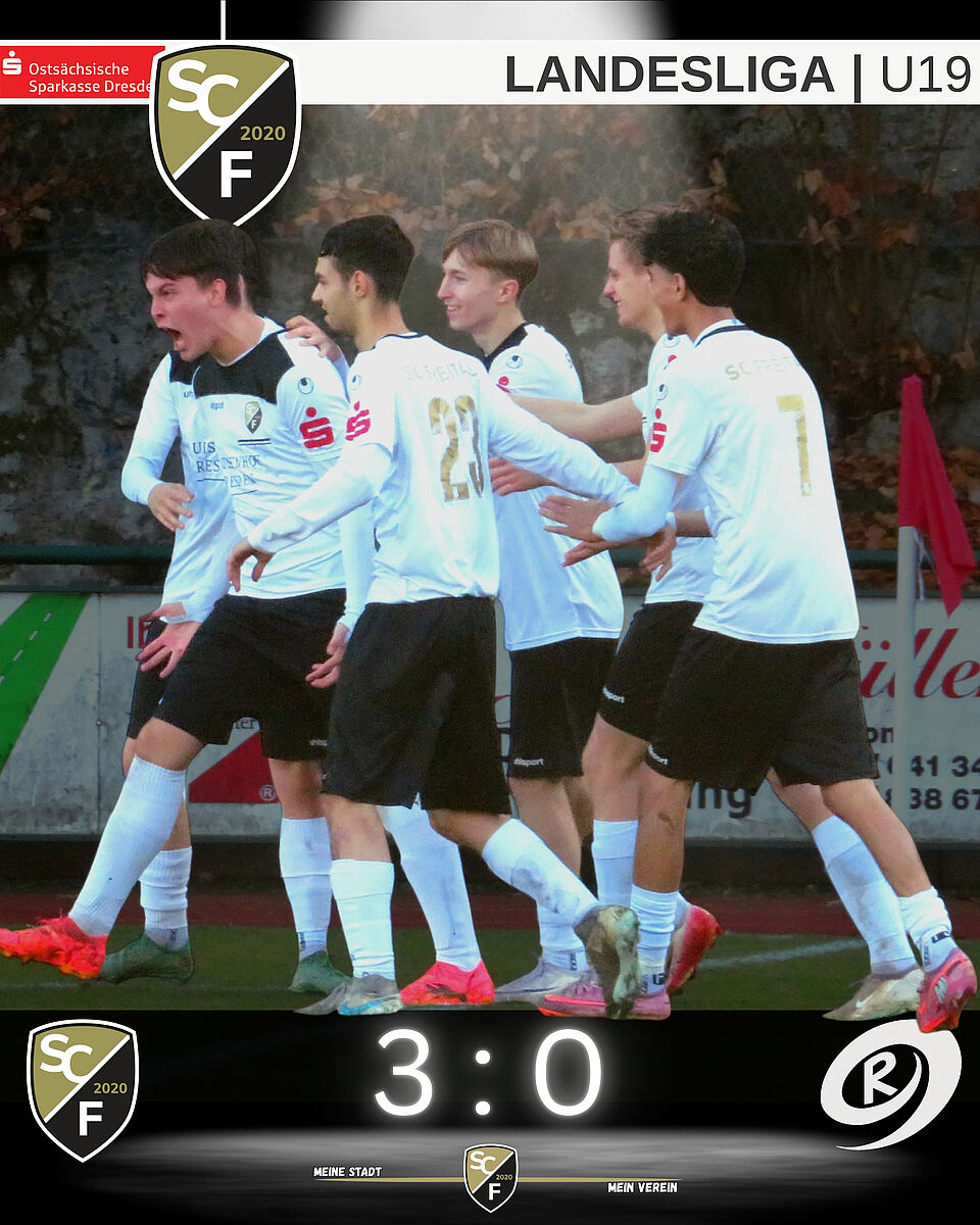 Mit einem am Ende doch sehr deutlichen 3:6 verlor unsere U23 gegen FV Dresden 06 Laubegast. Die Elf von Cheftrainer Markus Weise startete dabei wie die Feuerwehr in die Partie. Nach zwei gespielten Minuten schoss Richard Stirz den Ball nach Eckstoß zum ersten Mal in die Maschen der Dresdner, 18 Minuten später erhöhte Freitals Toptorjäger Nils Seyfert mit einem Traumtor. Danach dauerte es jedoch nur drei Minuten, bis der nächste Ball im Netz landete: Arthur Kaplan erzielte für die Blau-Gelben den Anschlusstreffer vom Punkt. Ex-SCFler Martin Riemer wurde hierbei von den Beinen geholt. Dieser Treffer war wie ein Startschuss für Laubegast. Nach einer halben Stunde war alles wieder auf Null gestellt und die Landeshauptstädter markierten den Ausgleich. Nach einigen gespielten Minuten im zweiten Abschnitt schoss Tim Oliver Pohle (52.), der schon zum Ausgleich in Halbzeit eins traf, die 06er in Front. Besonders bitter: Maximilian Bayer erzielte zwei Minuten zuvor den SCF-Führungstreffer, dieser wurde jedoch wegen einer denkbar knappen Abseitsposition einkassiert. Danach folgten noch die Treffer von Louis Höft (65.) und Ramon Gleitz (79.), bevor der SCF in erneut durch Nils Seyfert jubeln durfte (90.). Damit war aber noch nicht Schluss, denn kurz vor Ultimo trug sich Martin Riemer(90.+4) auch noch in Torschützenliste ein und setzte den Schlusspunkt.