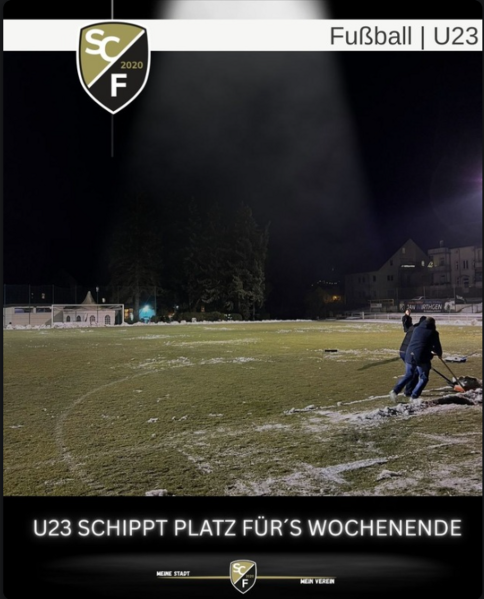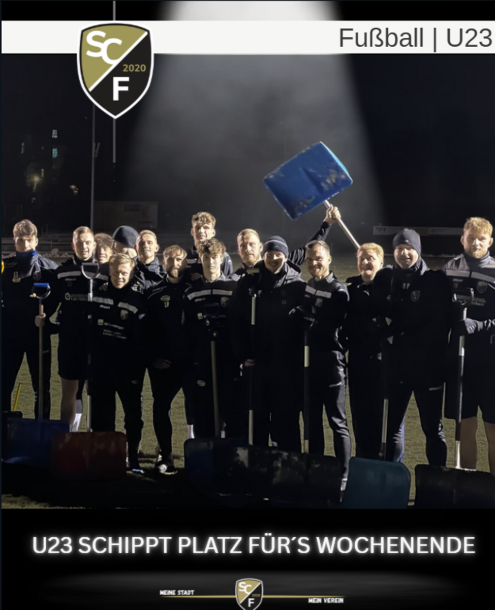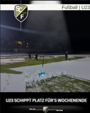 Coach Markus Weise nahm seine Jungs in die Pflicht und die leisteten gemeinsam Großes und hat sich am Donnerstagabend an die Arbeit gemacht, und den ganzen Schnee weggeschippt bis der Platz leer war. Durch die fleißige Arbeit der U23 und des Trainers, ist der Platz spielfähig am Samstag gegen den SV Lipsia 93 Eutritzsch. Eine Absage ist somit vom Tisch!