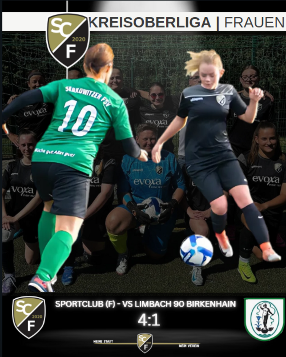 Unsere Frauen empfingen am Sonntag das Tabellenschlusslicht. Bereits in der zwölften Minute ging der SCF durch Daniela Müller in Führung. Doch die Gegner legten nach und schossen in der 30. Minute den Ausgleich. Mit einem 1:1 ging es für beide Mannschaften in die Pause, aus der unsere Frauen stark wieder zurück kamen. In der 62. Minute legte Daniela Mülller erneut vor - zum 2:1 und Selina Walter sowie Charlotte Marie Köhler legten in der 69. und 77. Minute zum 3:1 und 4:1 nach. Also ein klarer Sieg für unsere Frauen. Bärenstark!