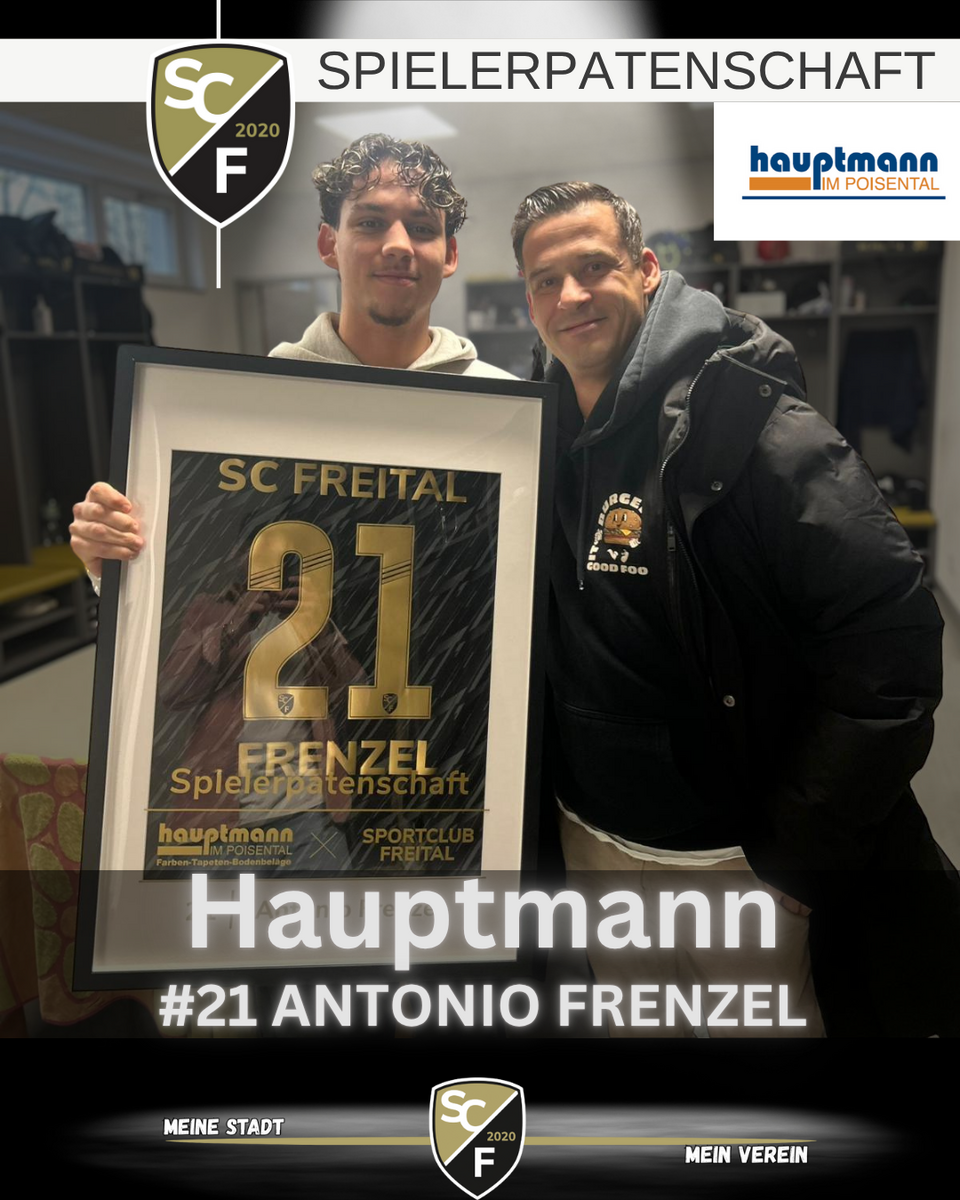 Antonio Frenzel darf sich über starke Unterstützung freuen – unsere Nummer 21 hat mit der Firma Hauptmann im Poisental einen Spielerpaten für die laufende Saison gefunden.